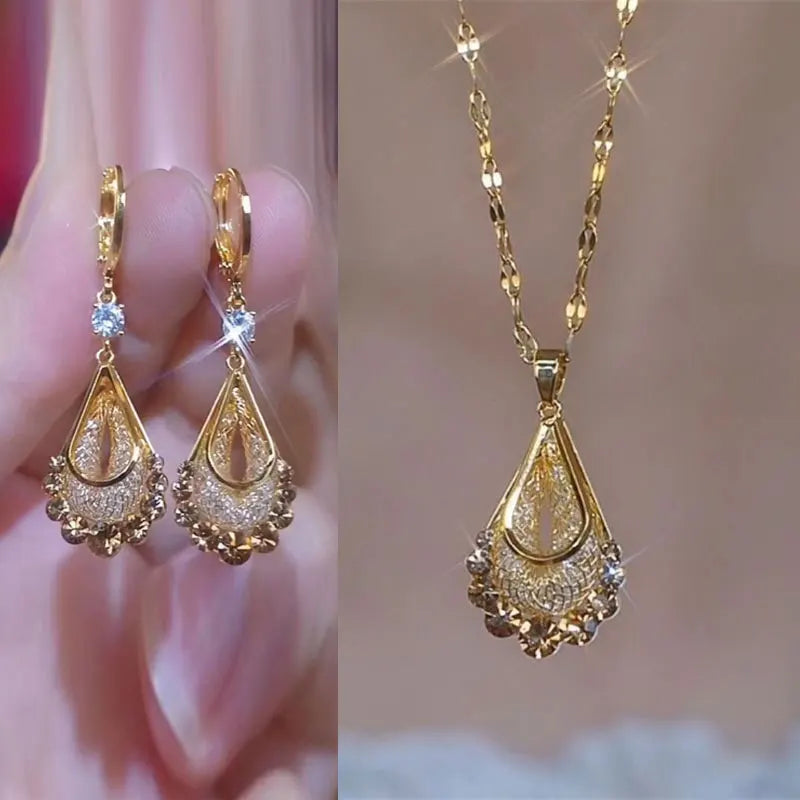 Shiny Water Crystal Long Tassel Drop Earrings + Necklace ™